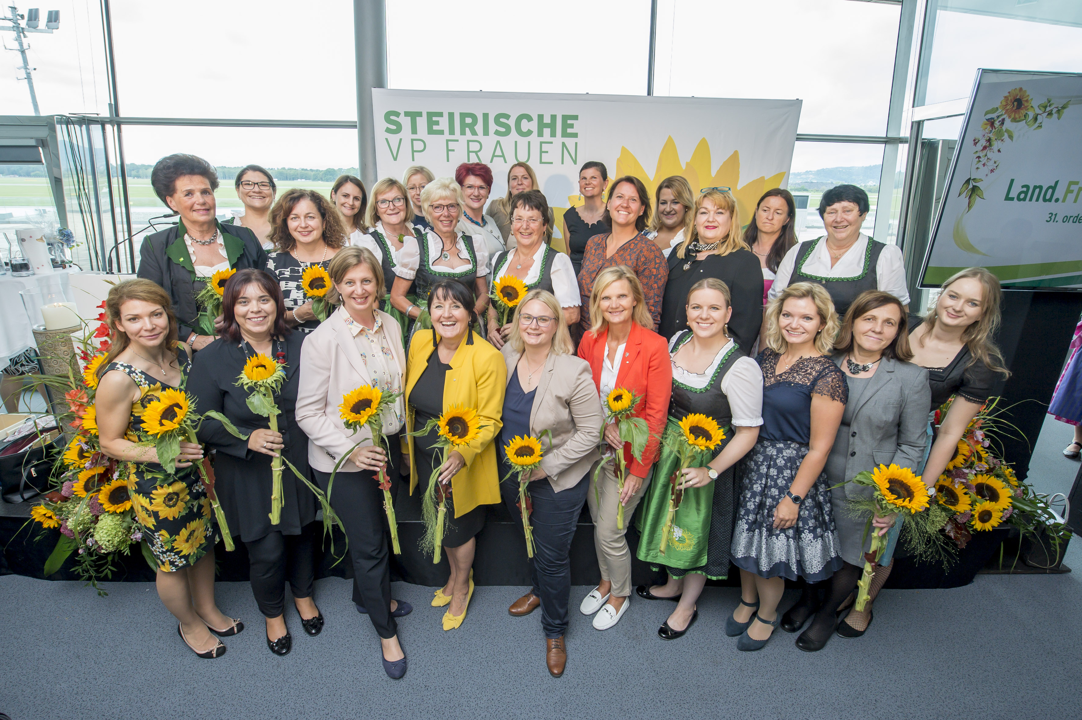 Am Flughafen Graz starteten die Steirischen VP Frauen am 31. ordentlichen Landestag mit voller Kraft durch: Das Steuer hat weiterhin Landesleiterin und Zweite Landtagspräsidentin Manuela Khom in der Hand. Sie wurde mit 99,5% von mehr als 200 Delegierten wiedergewählt. Mit ihr übernehmen als ihre Stellvertreterinnen Landesrätin Barbara Eibinger-Miedl, Brucker Vbgm.in Susanne Kaltenegger, Abg. zum Nationalrat Martina Kaufmann und GRin Helene Silberschneider die Verantwortung.